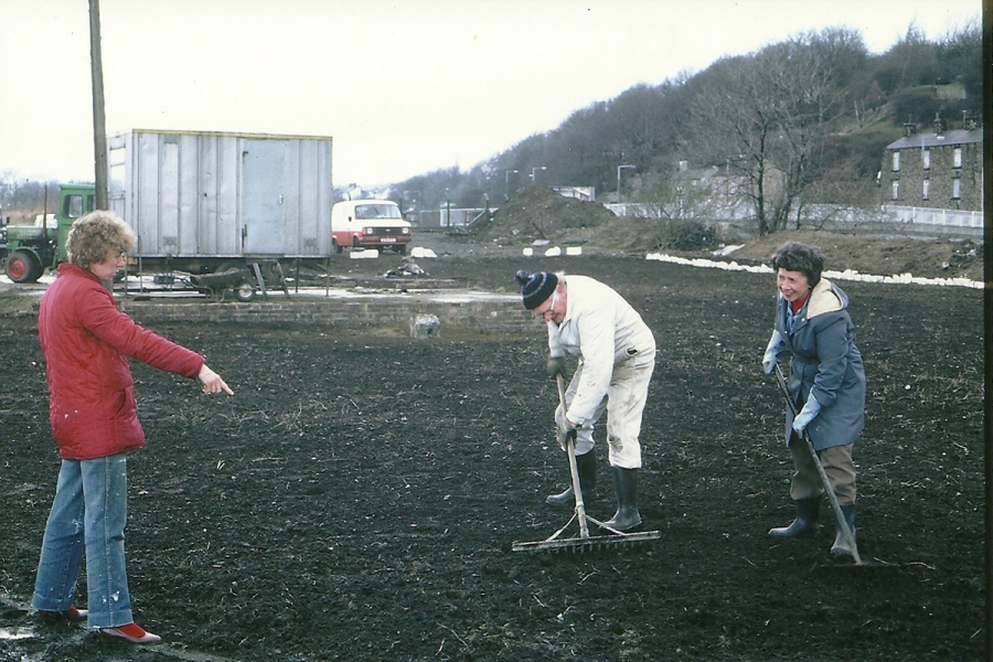 Early days photos of members at work on the Club site.